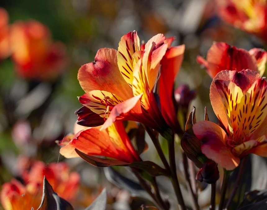 Alstroemeria ‘Indian Summer’ is simply breathtaking, producing vibrant flowers against unique rich bronze foliage. These hardy Peruvian Lilies are compact with an upright habit, ensuring that stems are still a good length for cutting in you want a few for a vase indoors. The perfect perennial for borders and patio planters where it will flower continuously from June to November. Reaching around 80cms tall and 60cms wide.