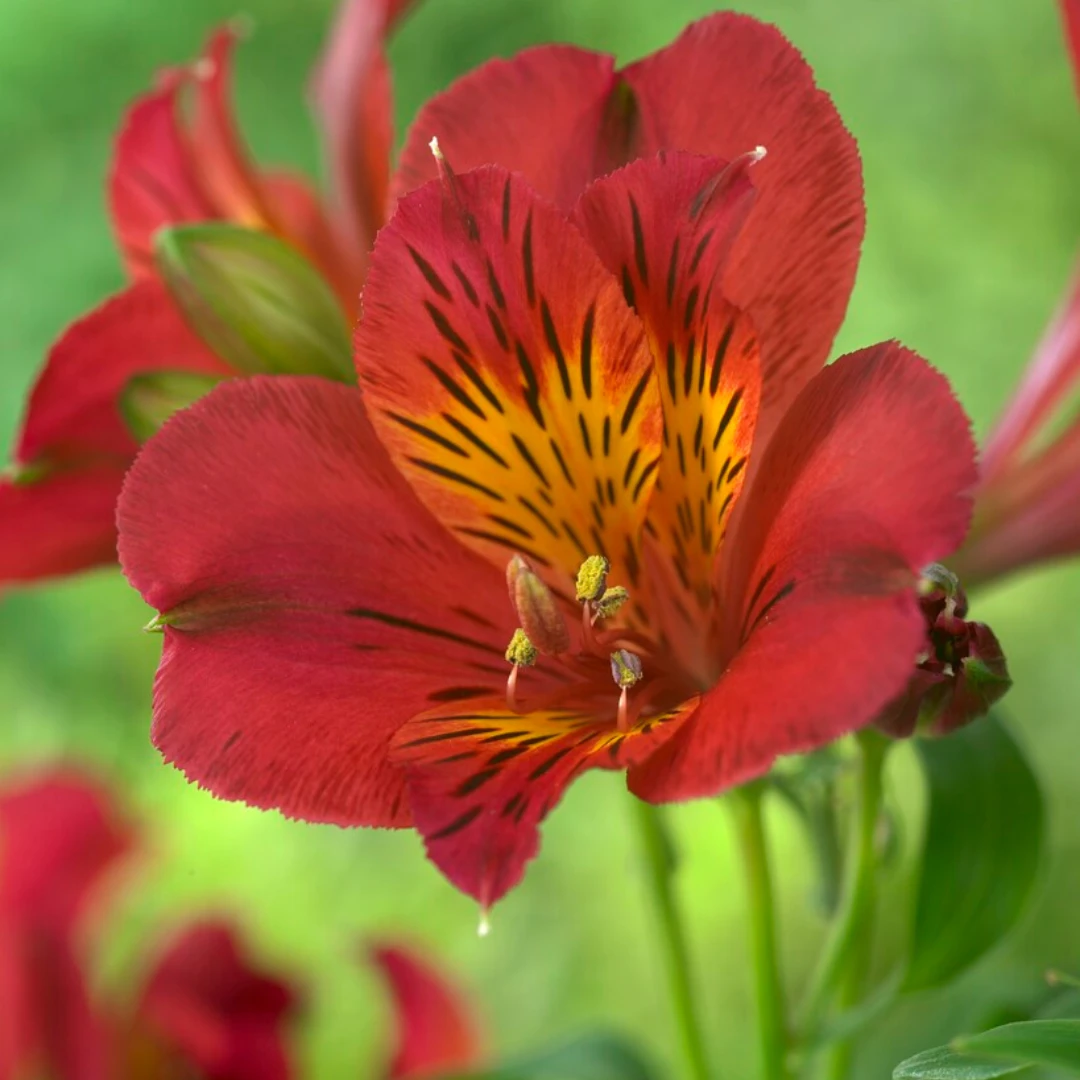 A compact flowering Alstromeria variety, this plant produces glossy green foliage and striking red flowers. Perfect for pots and containers, expect it to have an ultimate height and spread of 0.4m.