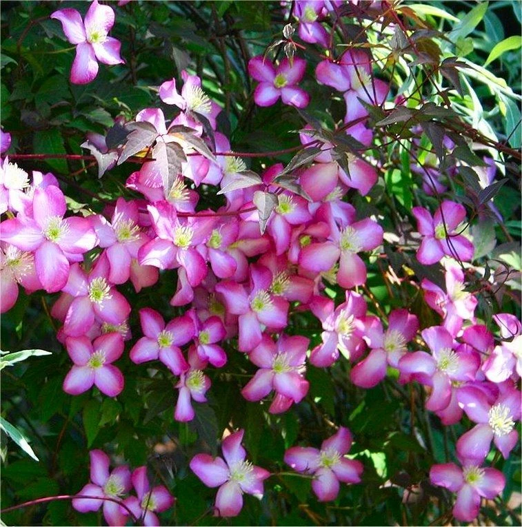 Beautiful, bright cherry-pink flowers in May and June amid purple-flushed, mid-green leaves. This award-winning form of montana clematis is ideal for covering a wall or fence in a north-facing site. This Clematis is perfect for small gardens, being a less vigorous form of other popular montana varieties. Supplied in approx 2-3 litre containers.