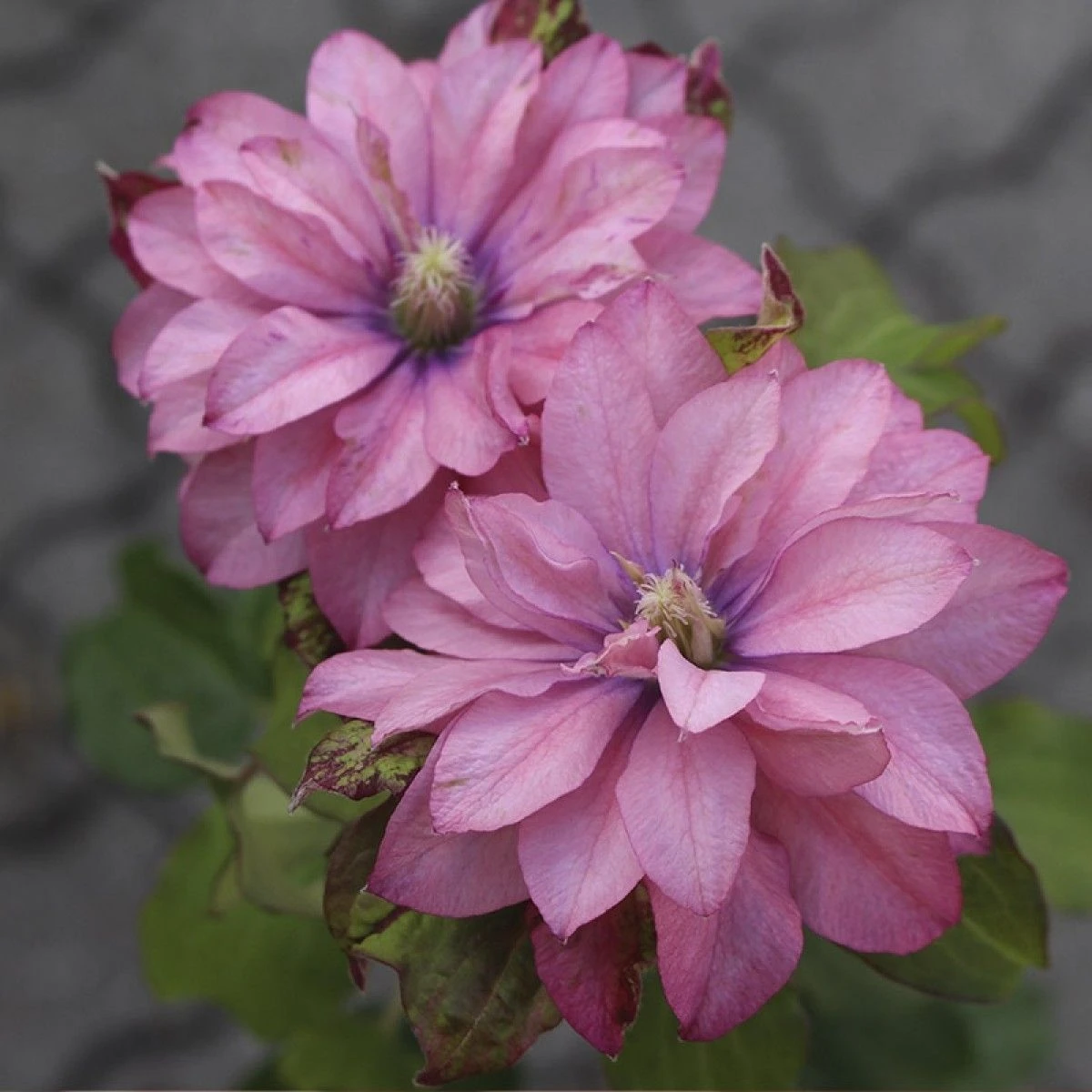 This deciduous, perennial, climber develops double flowers in Spring in a rich colour selection of pink, purple and red. The summer flowers are single.