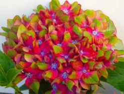 The head of branches that is formed will carry the large blue, pink and white flowers all at the same time.