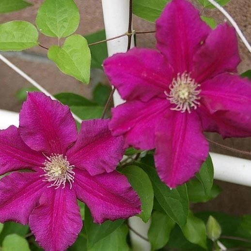 Clematis ‘Ernest Markham’ is a superb deciduous climber. It is no surprise that this outstanding plant has won the prestigious RHS Award of Garden Merit. Produces stunning, magenta-coloured flowers from the middle of Summer right through to mid-Autumn. Gold-chocolate coloured centres really set this plant apart from the rest and the vivid flowers contrast beautifully with the mid-green leaves. The perfect plant for scrambling through roses and shrubs or climbing against fences and walls. Best grown in moist, well-drained soil in full sun to enhance blooming and stem ripening.
