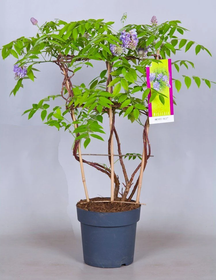 Wisteria Amethyst Falls is a native species of North America and is a more compact variety than its Oriental cousins, it is ideally suited not only for growing in the garden, but also for large pots, which can easily be be placed under pergolas or arches to transform them into a charming feature – perfect for that cottage garden look. If the garden is large enough, then plant them out against the wall of a house for an incredible late spring and summer display.