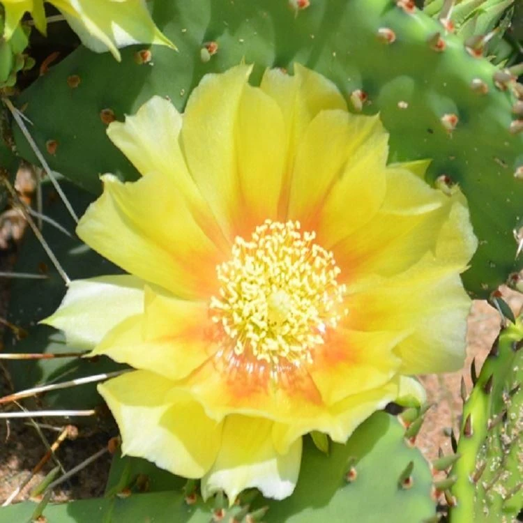 The Hardy Cactus! – This sprawling cactus is extremely cold hardy, although not wet hardy so place somewhere that dries out in winter (i. e. roof or wall, or give cloche protection). Flowers appear on mature plants. Well worth a try in any well drained site, or keep indoors over winter if you don’t want to risk it. Supplied in an approx 1-2 litre pot. These plants are out all winter in our nusery, and freeze several times!!