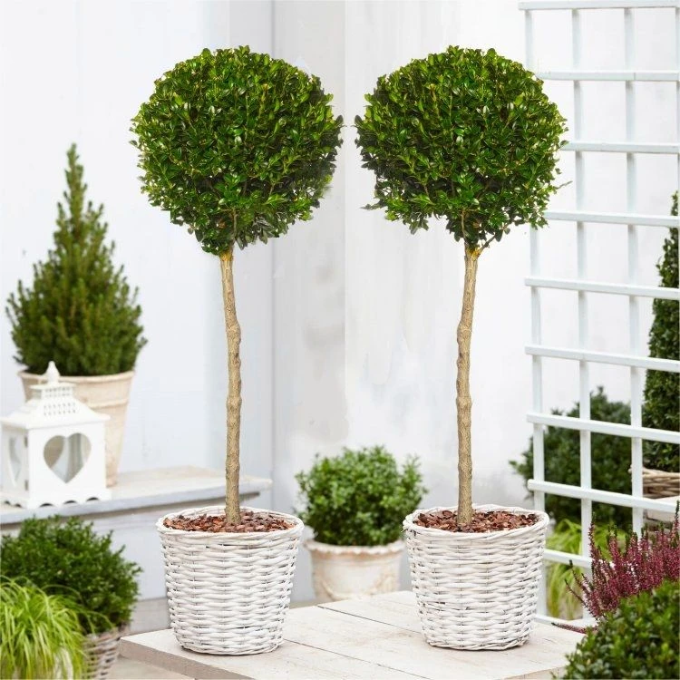Supplied as strong specimen plants clipped into neat spheres, the overall height is around 80-100cm. Please note baskets pictured are not included. Plants can easily be kept tidy and shaped by clipping a couple of times each year.