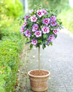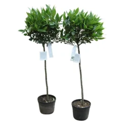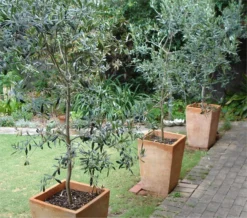 Pair Of Premium Quality Topiary Buxus PYRAMIDS With Stylish Contemporary Flared SLATE BLACK Planters